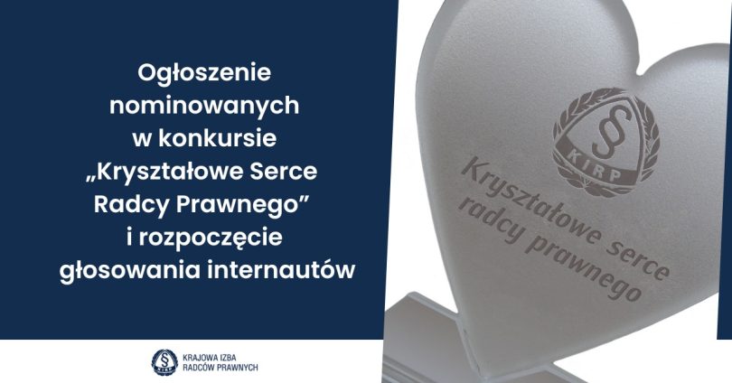 Znamy już nazwiska osób nominowanych w XV edycji Konkursu „Kryształowe Serce Radcy Prawnego”. Wyłonione osoby ubiegają się o jedno z najważniejszych wyróżnień przyznawanych przez samorząd radcowski – miano Kryształowego Serca Radcy Prawnego. Wraz z publikacją nominacji ruszyło głosowanie internautów, którzy niezależnie od jury konkursu wybiorą laureata w kategorii „Nagroda Internautów. Wyróżniająca działalność społeczna oraz bezinteresowna pomoc”. Każdy z nas może oddać swój głos na stronie www.krysztaloweserce.kirp.pl. Zapraszamy do głosowania na członka naszej Izby, r.pr. Krzysztofa Strzyżewskiego.