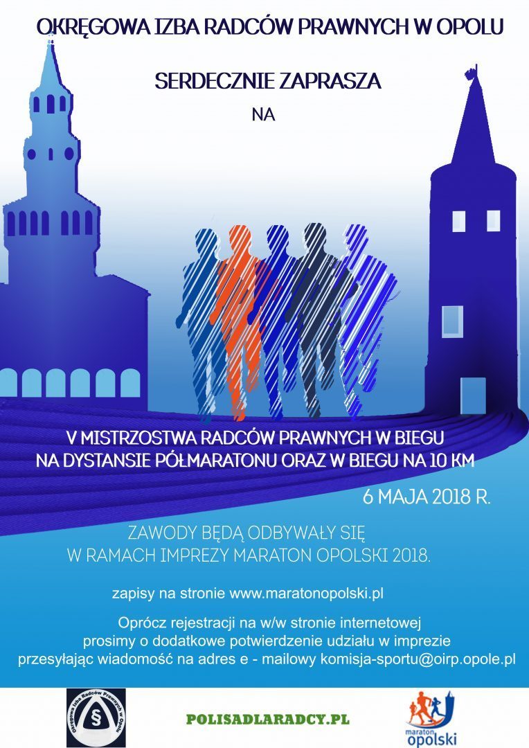 w V Mistrzostwach Radców Prawnych w biegu na dystansie Półmaratonu oraz w biegu na 10 km w dniu 6 maja 2018 r., które to zawody będą odbywały się w ramach imprezy Maraton Opolski 2018.