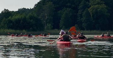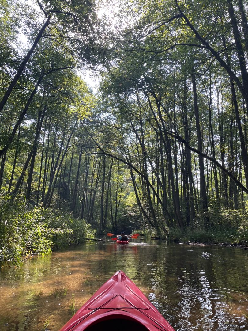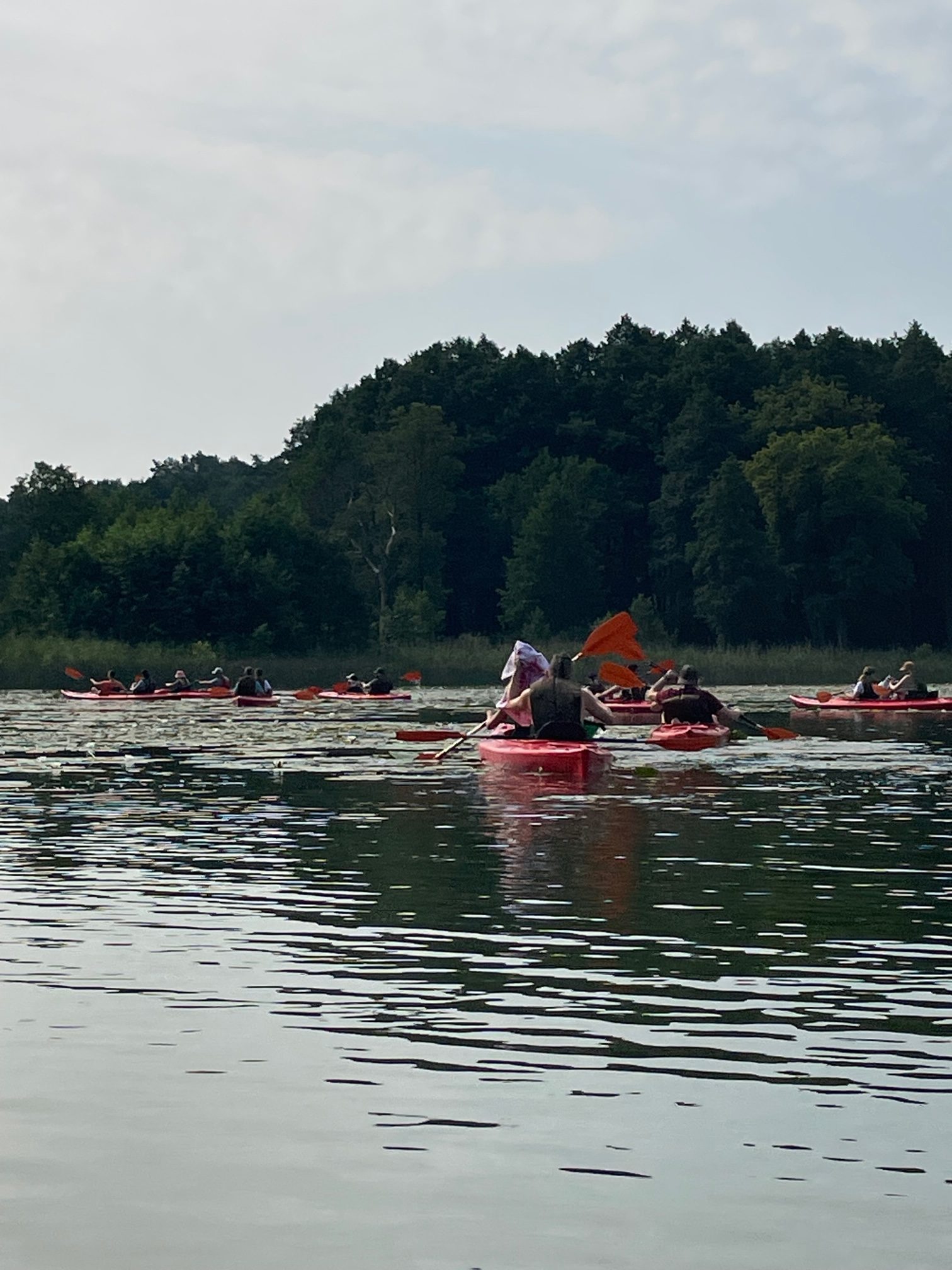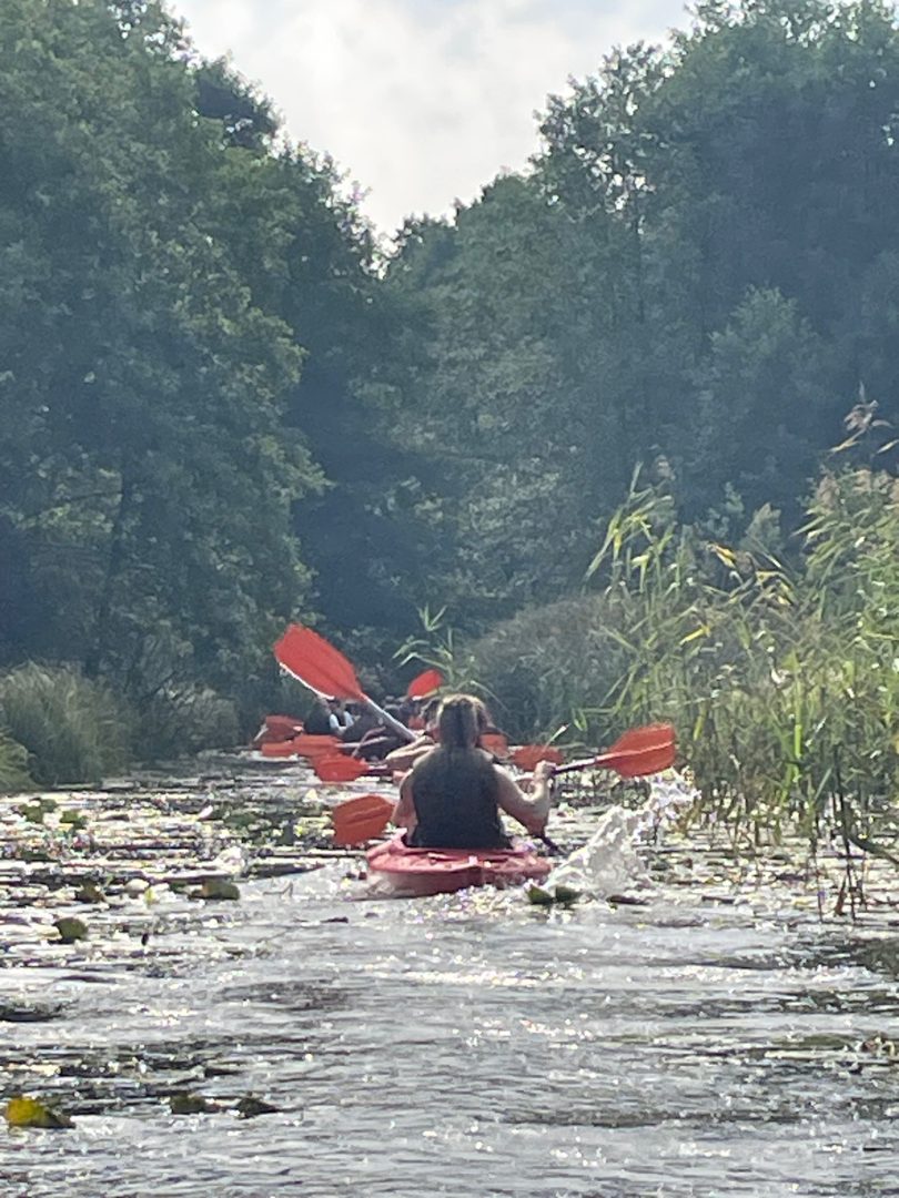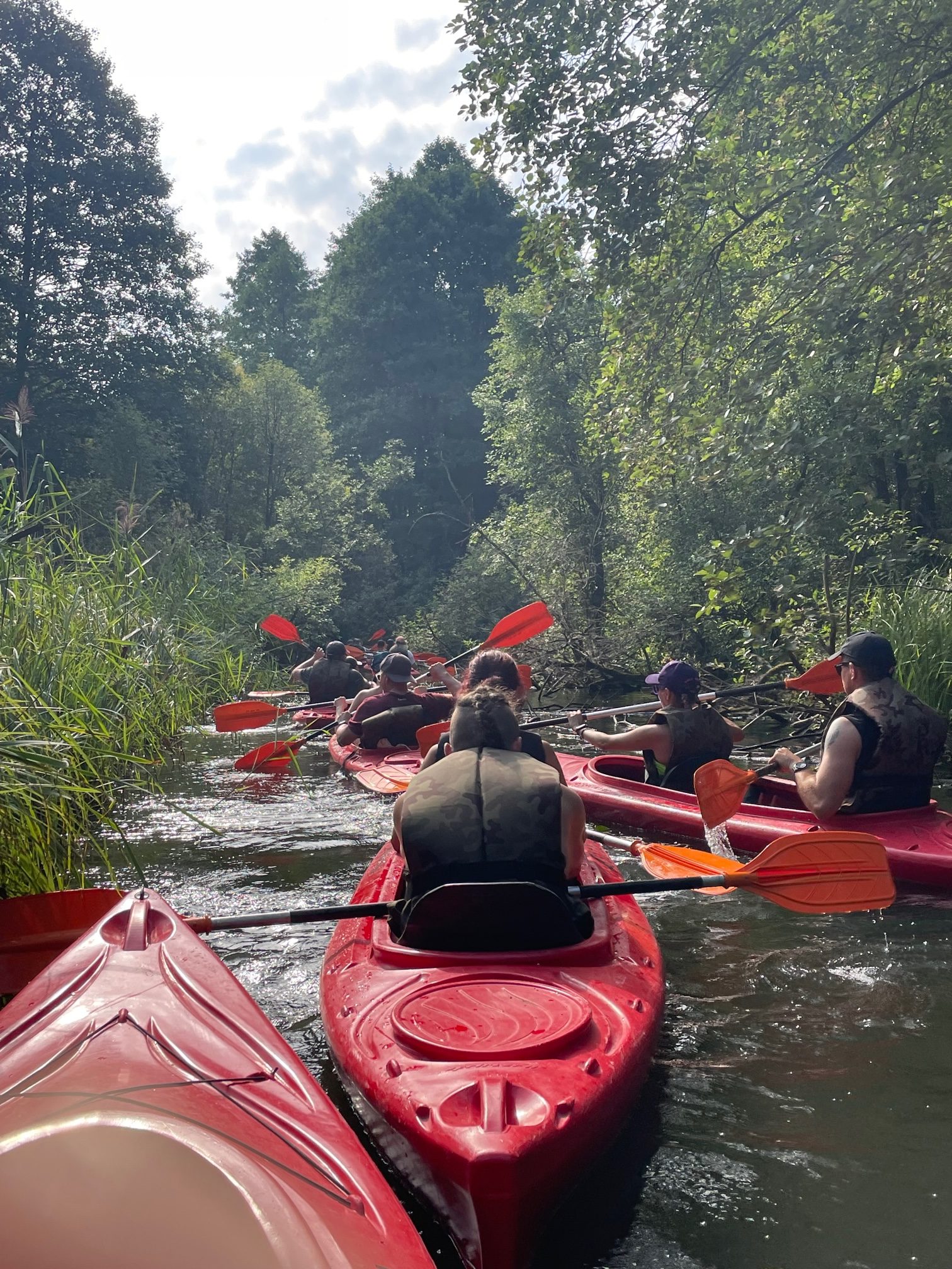 Za nami kolejny piąty spływ kajakowy organizowany przez OIRP Olsztyn. Tym razem celem była rzeka Marózka i 21 km odcinek z Waplewa do miejscowości Kurki. Zdyscyplinowani uczestnicy (jak i sam autokar) bez opóźnień stawili się na miejscu zbiórki i ok. 9.30 po krótkiej odprawie i instruktażu (do czego służy kajak, kamizelka ratunkowa i wiosła) ruszyliśmy szuwarami w kierunku punktu końcowego, co jak się okazało miało nastąpić za ok. 5 godzin.