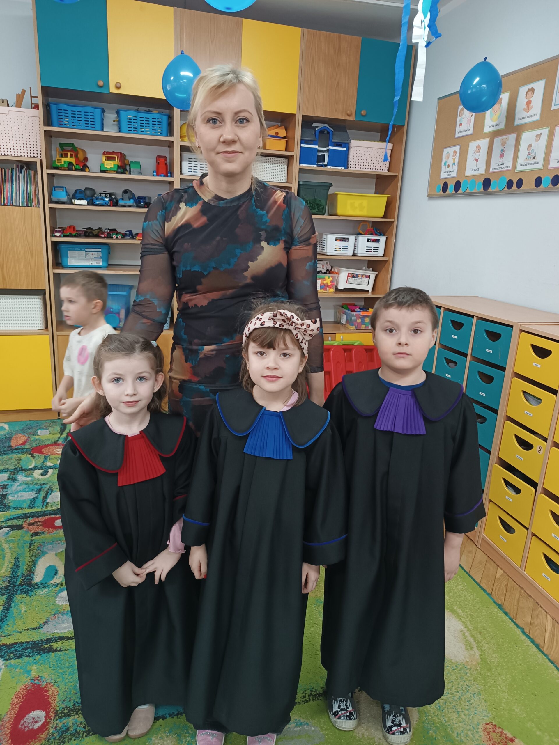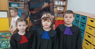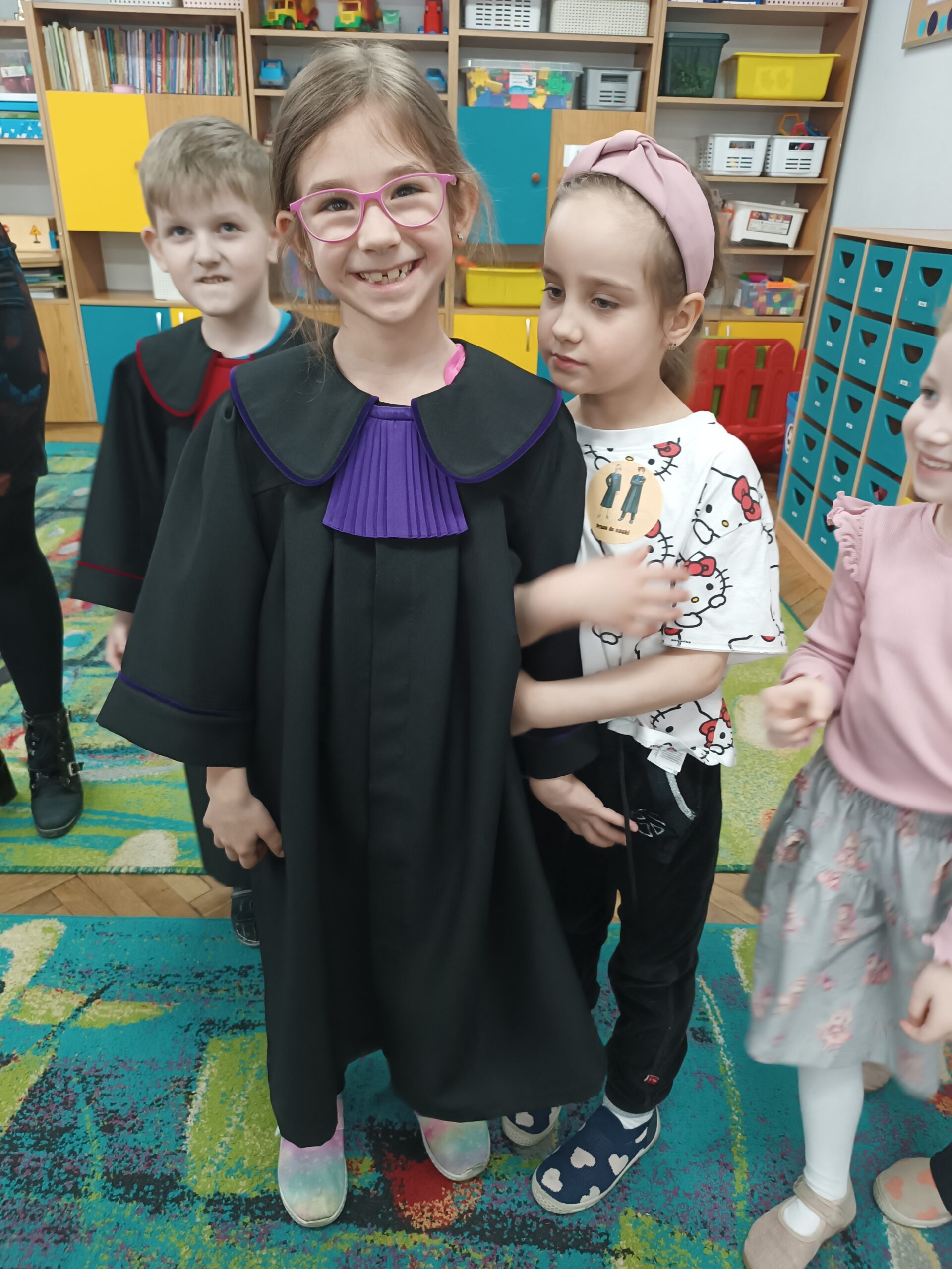 Mini togi cieszyły się szczególnym zainteresowaniem wśród przedszkolaków. Dzieci bardzo chętnie wcielały się w rolę poszczególnych zawodów prawniczych, przymierzając je i pozując do zdjęć. Przedszkole otrzymało też książeczkę edukacyjną.
