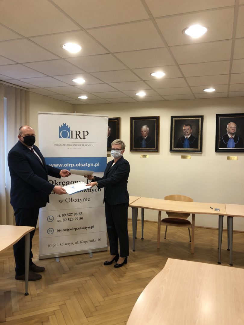 W dniu 11 grudnia 2020 r. Dziekan Okręgowej Izby Radców Prawnych w Olsztynie r.pr. Katarzyna Skrodzka-Sadowska wraz z Dziekanem Wydziału Prawa i Administracji Uniwersytetu Warmińsko-Mazurskiego prof. dr hab. Jarosławem Dobkowskim podpisali porozumienie o współpracy w zakresie m.in.: