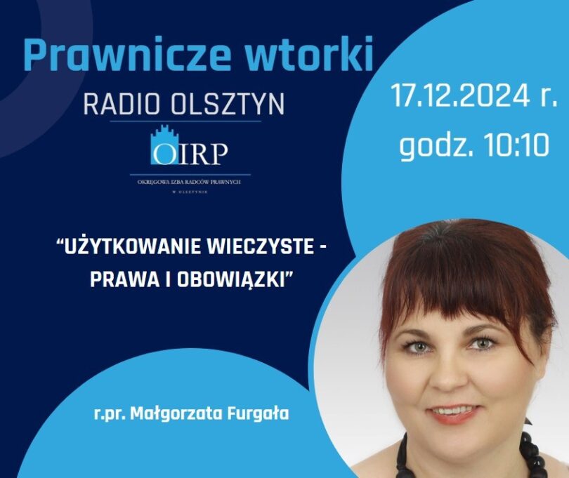 Serdecznie zapraszamy na kolejną audycję z cyklu PRAWNICZE WTORKI, która odbędzie się we wtorek 17 grudnia 2024 r. o godz. 10:10.