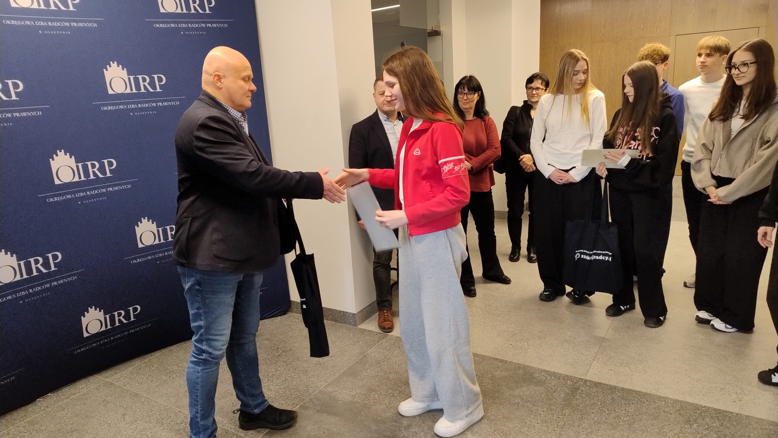 W dniu 05.03.2026 r. o godz. 10:00 został zorganizowany w siedzibie Okręgowej Izby Radców Prawnych w Olsztynie, II etap – okręgowy Ogólnopolskiej Akademii – Konkurs Wiedzy o Prawie. Uczestnicy, którzy przybyli na konkurs swoje zmagania rozpoczęli od rozwiązania pisemnego kazusu, a następnie każdy z uczestników przystępował do części ustnej. Nad prawidłowym przebiegiem konkursu, czuwała komisja egzaminacyjna w następującym składzie: r. pr. Karol Litwiniuk, r. pr. Michał Gornowicz oraz r. pr. Filip Wichrowski. W czasie zmagań konkursowych, dla uczestników konkursu oraz ich opiekunów został przygotowany przez naszą Izbę catering. Po zakończeniu części ustnej i podliczeniu punktów do III etapu konkursu został zakwalifikowany Wiktor Zgoda-Nowacki, który uzyskał najlepszy wynik, spośród wszystkich uczestników konkursu. Po zakończeniu zmagań konkursowych, Dziekan Okręgowej Izby Radców Prawnych w Olsztynie – Michał Korwek, pogratulował udziału w konkursie wszystkim uczestnikom, jak również wręczył drobne upominki oraz dyplomy za udział w tegorocznych zmaganiach.