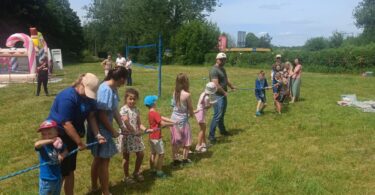 Na najmłodszych uczestników czekały liczne atrakcje – kolorowe dmuchańce oraz gry i zabawy z animatorkami. Dzieci z radością korzystały z przygotowanych niespodzianek, a uśmiech nie schodził im z twarzy przez cały dzień. Każde z dzieci otrzymało pamiątkowy medal za udział w Pikniku.