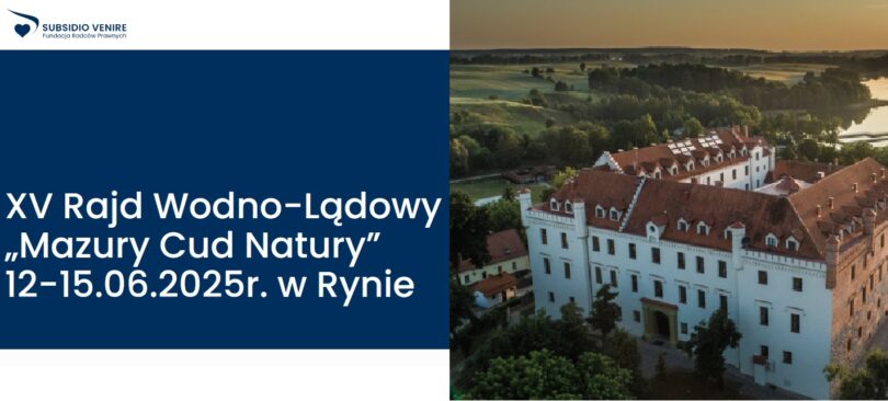 W imieniu Fundacji Radców Prawnych „Subsidio Venire” zapraszamy Państwa na jubileuszowy XV Rajd Wodno-Lądowy „Mazury Cud Natury”, który obędzie się w Rynie w dniach 12 – 15 czerwca 2025 r.