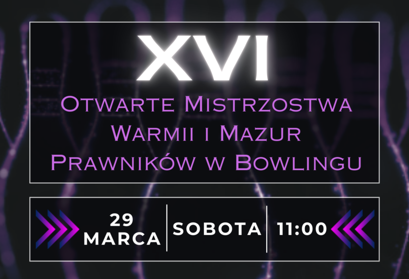 Okręgowa Izba Radców Prawnych w Olsztynie, ma zaszczyt serdecznie zaprosić do wzięcia udziału w XVI Otwartych Mistrzostwach Warmii i Mazur Prawników w Bowlingu – zarówno dotychczasowych uczestników, jak również osoby, które chcą spróbować swoich sił w grze w kręgle.