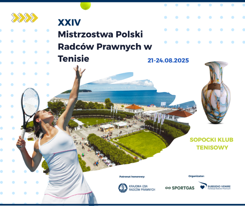 w imieniu Prezesa Krajowej Rady Radców Prawnych oraz Zarządu Fundacji Radców Prawnych „Subsidio Venire” serdecznie zapraszamy członków Okręgowych Izb Radców Prawnych, w tym aplikantów radcowskich, do udziału w XXIV Mistrzostwach Polski Radców Prawnych w Tenisie o Puchar Prezesa Krajowej Rady Radców Prawnych, które odbędą się w Sopocie w dniach 21–24 sierpnia 2025 r.
