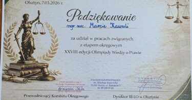 7 marca 2026 r. W III Liceum Ogólnokształcącym w Olsztynie odbył się etap wojewódzki XXVIII edycji Olimpiady Wiedzy o Prawie. Wydarzenie zgromadziło uczniów szkół ponadpodstawowych z regionu, którzy zmierzyli się z wymagającymi zagadnieniami z zakresu prawa oraz wiedzy o państwie.