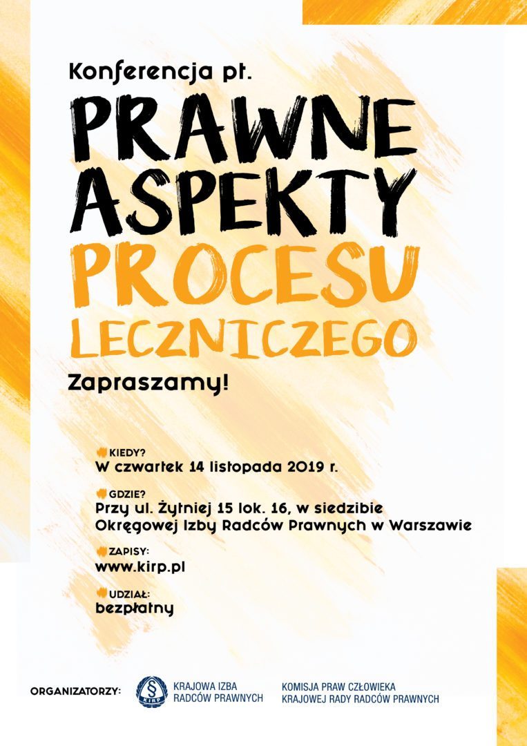 Zapraszam na konferencję pt. „Prawne aspekty procesu leczniczego” kierowaną do Państwa przez Przewodniczącą Komisji Praw Człowieka KRRP r.pr. Magdalenę Witkowską.
