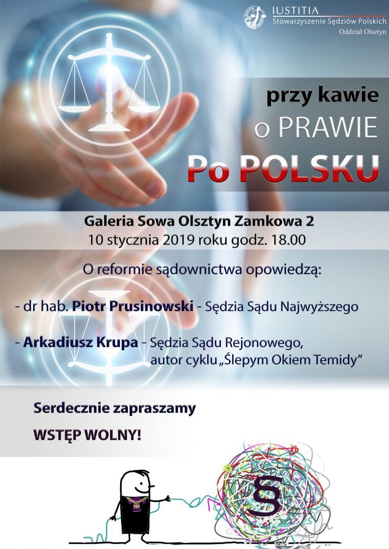 Stowarzyszenie Sędziów Polskich IUSTITIA – Oddział w Olsztynie zaprasza na pierwsze z serii „Warmińskie spotkanie sądowe”, na którym, jako sędziowie Okręgu Olsztyńskiego będziemy się starali przybliżyć Państwu problemy dotyczące funkcjonowania sądów i prawa.